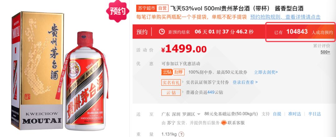 据基金君当时报道,苏宁方面,已有超过10万人预约购买。根据苏宁的规则,预约成功的消费者要等到10月8日上午10点开启抢购模式。
