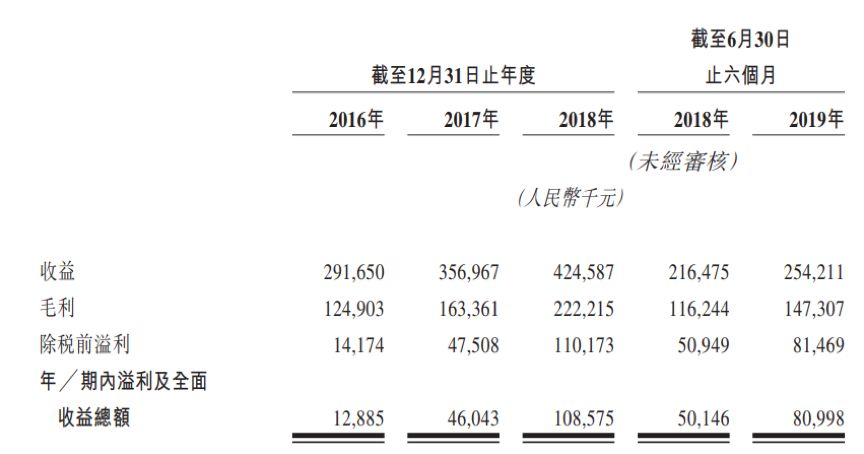 2016-2018年期间,公司的营收从2.92亿元上升至4.25亿元,期内溢利及全面收益总额由1288.5万元上升至10857.5万元,复合增速分别达到了20.64%和190.28%。