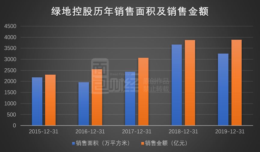 绿地控股披露的季度经营数据显示,截至2019年末,绿地控股全年实现合同销售面积3257.2万平方米,比去年同期减少11.1%;实现合同销售金额3880.42亿元,较上年同期仅增长5.49亿元,增幅仅有0.1%。