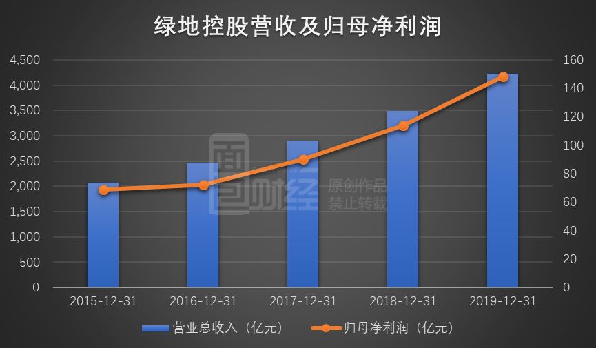 公告显示,绿地控股2019年总营收超过4200亿元,归母净利润149亿元,均呈双位数增长,总资产继续维持万亿规模。