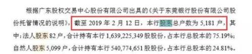 目前—东莞银行仍无控股股东及实际控制人。截至2019年2月12日,该行股东总数为5181户,其中机构股东82户,自然人股东5099户。较之前披露的股东人数又有所增加,也就是说股权分散难题并未解决。