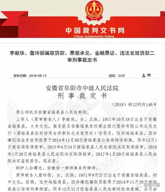 据中国裁判文书网公布的一则刑事判决书显示,一名初中文化的经商人士先后以12人名义向安徽省临泉农商行营业部、北关支行、张营支行等处贷款13笔,骗取贷款金额共计599万。安徽省临泉农商行两名信贷员则未按照规定履行贷前调查职责,出具同意发放贷款报告,违法发放贷款9笔,涉及429万元。